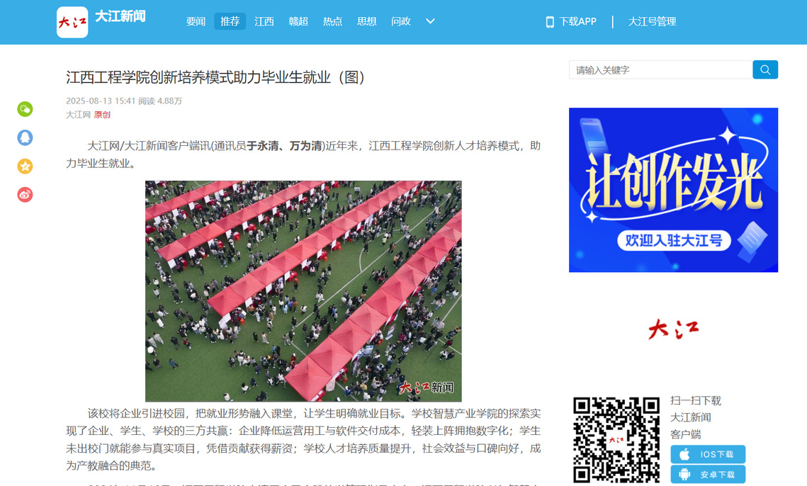 近年來(lái),江西工程學(xué)院創(chuàng)新人才培養(yǎng)模式,助力畢業(yè)生就業(yè)。