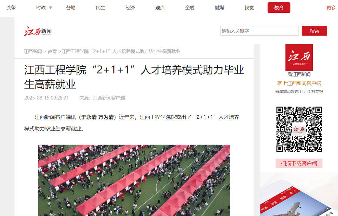 近年來,江西工程學(xué)院探索出了“2+1+1”人才培養(yǎng)模式助力畢業(yè)生高薪就業(yè)。