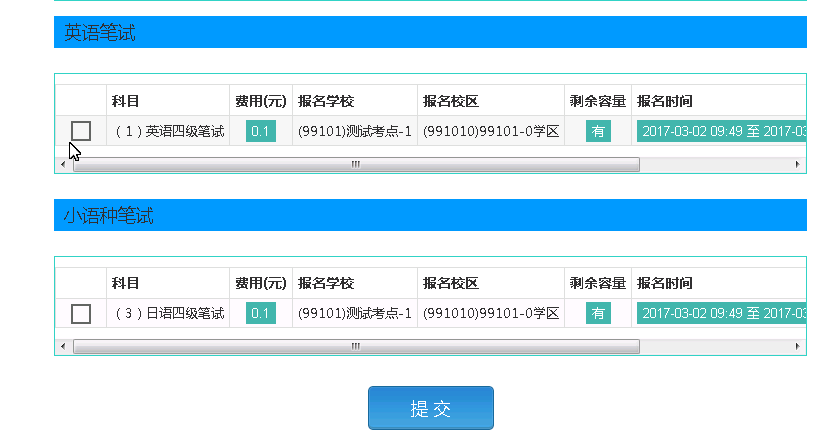 選擇要報(bào)考的口試科目,點(diǎn)擊“提交”按鈕。