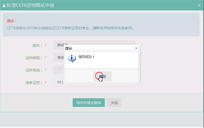 提示保存成功,這時候就需要管理員在考務(wù)系統(tǒng)中進(jìn)行操作通過或者不通過。