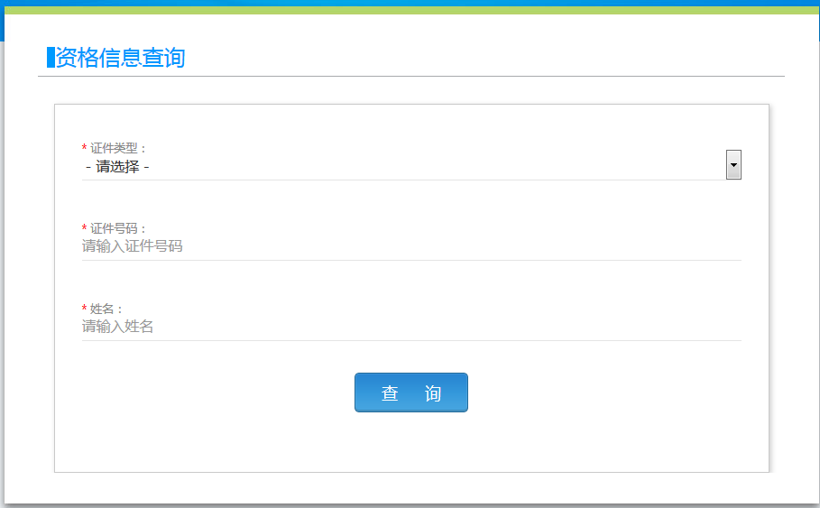 進(jìn)入資格查詢頁面,輸入考生的姓名、證件號、選擇證件類型點(diǎn)擊“查詢”按鈕