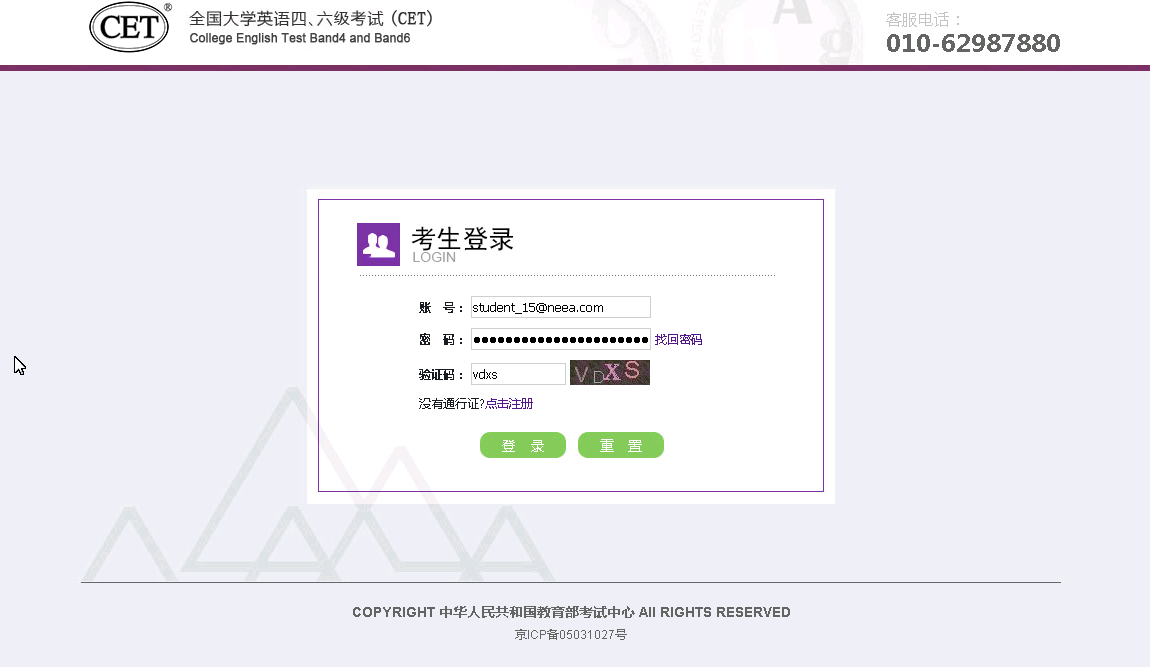 考生輸入賬號、密碼、驗(yàn)證碼,點(diǎn)擊“登錄”按鈕
