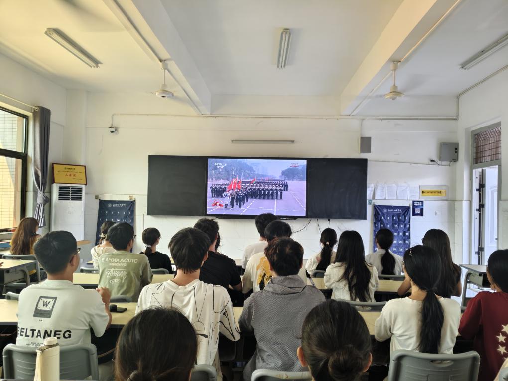 9月3日上午,全體學(xué)生精神飽滿地集中觀看紀(jì)念中國人民抗日戰(zhàn)爭暨世界反法西斯戰(zhàn)爭勝利80周年大會(huì)。天安門廣場上,盛大的閱兵儀式隆重舉行,習(xí)近平總書記發(fā)表“正義必勝、和平必勝、人民必勝”的重要講話,并檢閱受閱部隊(duì)。受閱部隊(duì)軍容嚴(yán)整、意氣風(fēng)發(fā),鐵甲戰(zhàn)車整齊列陣、威風(fēng)凜凜。這既是人民軍隊(duì)奮進(jìn)建軍百年的嶄新亮相,更是中華民族捍衛(wèi)世界和平的堅(jiān)定宣示。