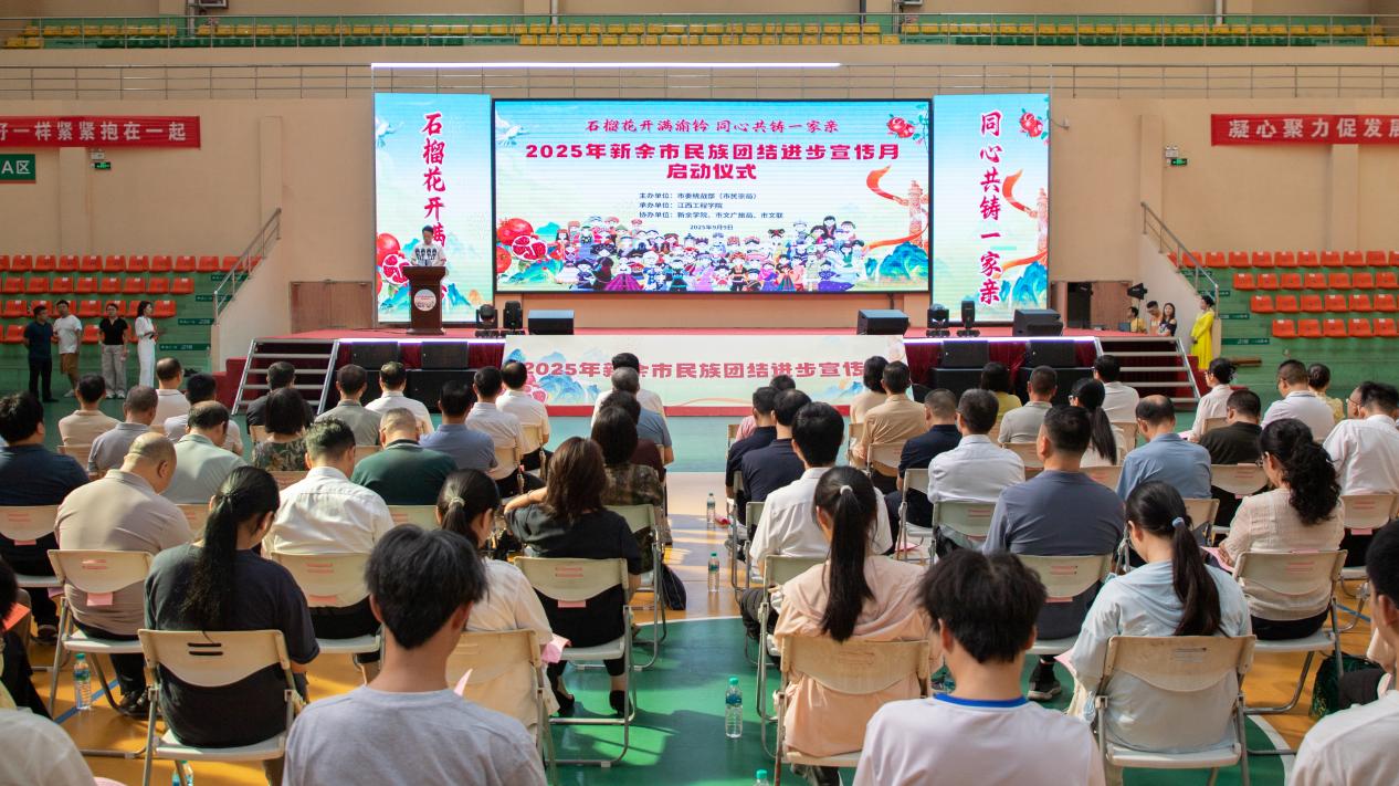9月9日,由新余市委統(tǒng)戰(zhàn)部(新余市民宗局)主辦、江西工程學(xué)院承辦的2025年新余市民族團結(jié)進步宣傳月啟動儀式在江西工程學(xué)院天工校區(qū)體育館隆重舉行。新余市副市長肖秋根出席啟動儀式并講話。校黨委書記、督導(dǎo)專員魏建克,黨委委員、理事長助理、校長助理樂俊杰出席。