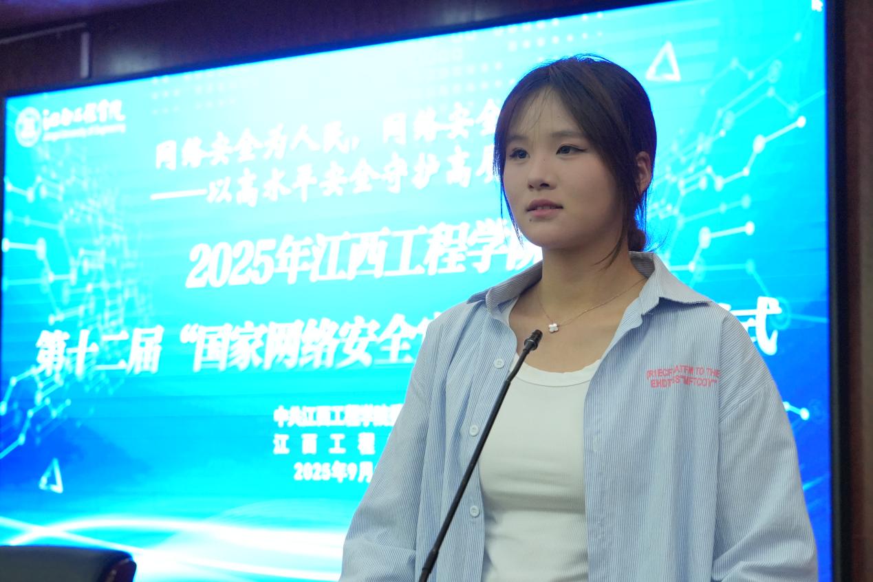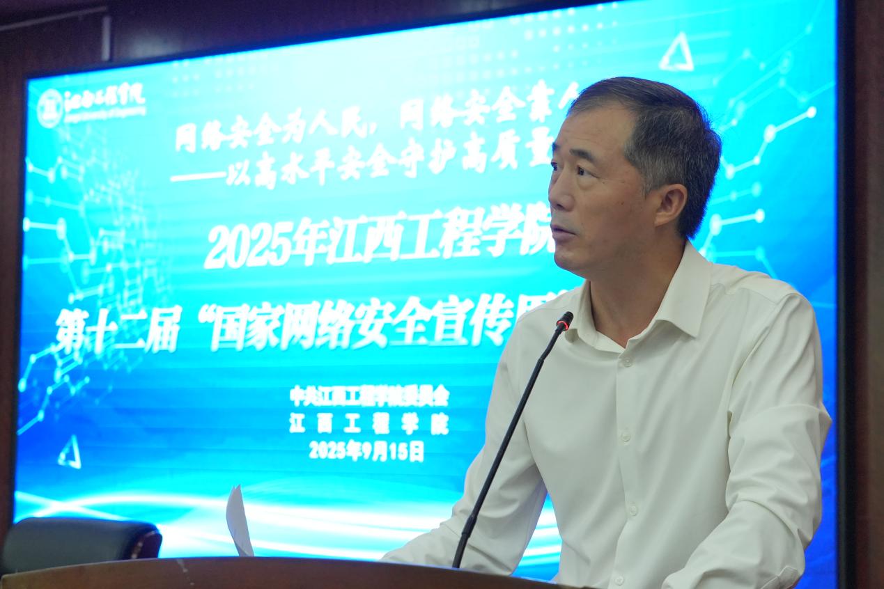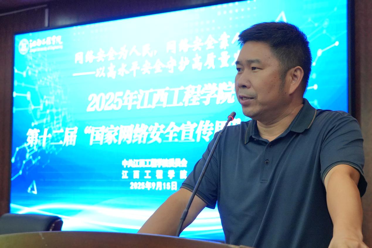 9月15日,江西工程學(xué)院在天工校區(qū)學(xué)術(shù)報(bào)告廳舉行2025年第十二屆“國(guó)家網(wǎng)絡(luò)安全宣傳周”啟動(dòng)儀式。本次活動(dòng)緊扣“網(wǎng)絡(luò)安全為人民,網(wǎng)絡(luò)安全靠人民——以高水平安全守護(hù)高質(zhì)量發(fā)展”主題,旨在進(jìn)一步增強(qiáng)全校師生的網(wǎng)絡(luò)安全意識(shí),提升網(wǎng)絡(luò)安全防護(hù)技能,營(yíng)造安全、健康、文明的網(wǎng)絡(luò)環(huán)境。