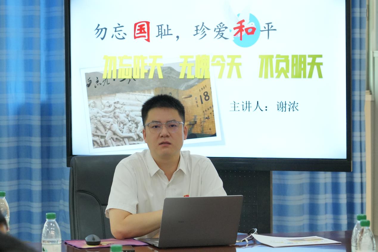 招生直屬黨支部書記謝濃以《勿忘國恥 珍愛和平》為題,帶領(lǐng)大家回顧了九一八事變的歷史和時代背景,強調(diào)了銘記九一八事變歷史的重要性,指出這是對黨員進行愛國主義教育和黨性修養(yǎng)提升的重要契機。謝濃呼吁全體黨員要時刻保持清醒頭腦,繼承和發(fā)揚革命先烈不怕犧牲、勇于斗爭的精神,將這份歷史記憶轉(zhuǎn)化為推動科研、服務(wù)人民的強大動力,為實現(xiàn)中華民族偉大復(fù)興的中國夢不懈奮斗。