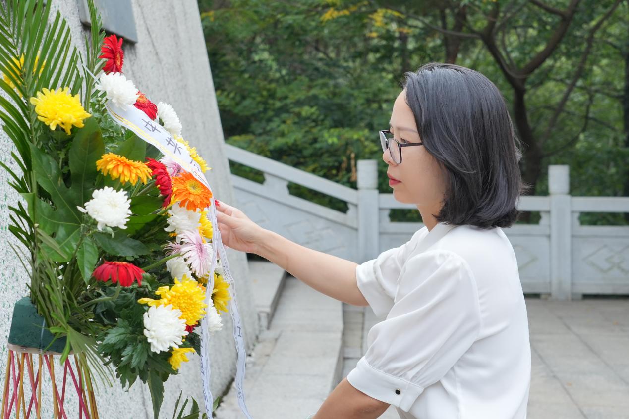 接著,全體人員向革命烈士三鞠躬并依次繞行瞻仰烈士紀念碑,深切緬懷革命先烈的崇高精神與偉大功績。