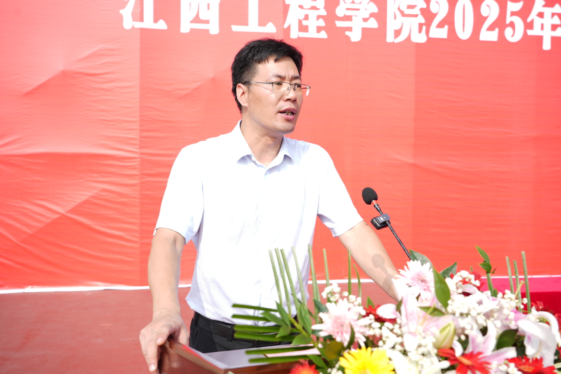 大會(huì)上,劉新躍以《逐光江工共赴新程》為題發(fā)表講話。他代表學(xué)校向全體2025級(jí)新生表示熱烈歡迎,向辛勤培育學(xué)生的家長(zhǎng)和老師致以崇高敬意和衷心感謝。同時(shí),劉新躍對(duì)江西工程學(xué)院的校名進(jìn)行了詳細(xì)解讀,并深入闡釋了校名背后所蘊(yùn)含的時(shí)代價(jià)值、辦學(xué)理念與精神內(nèi)涵。