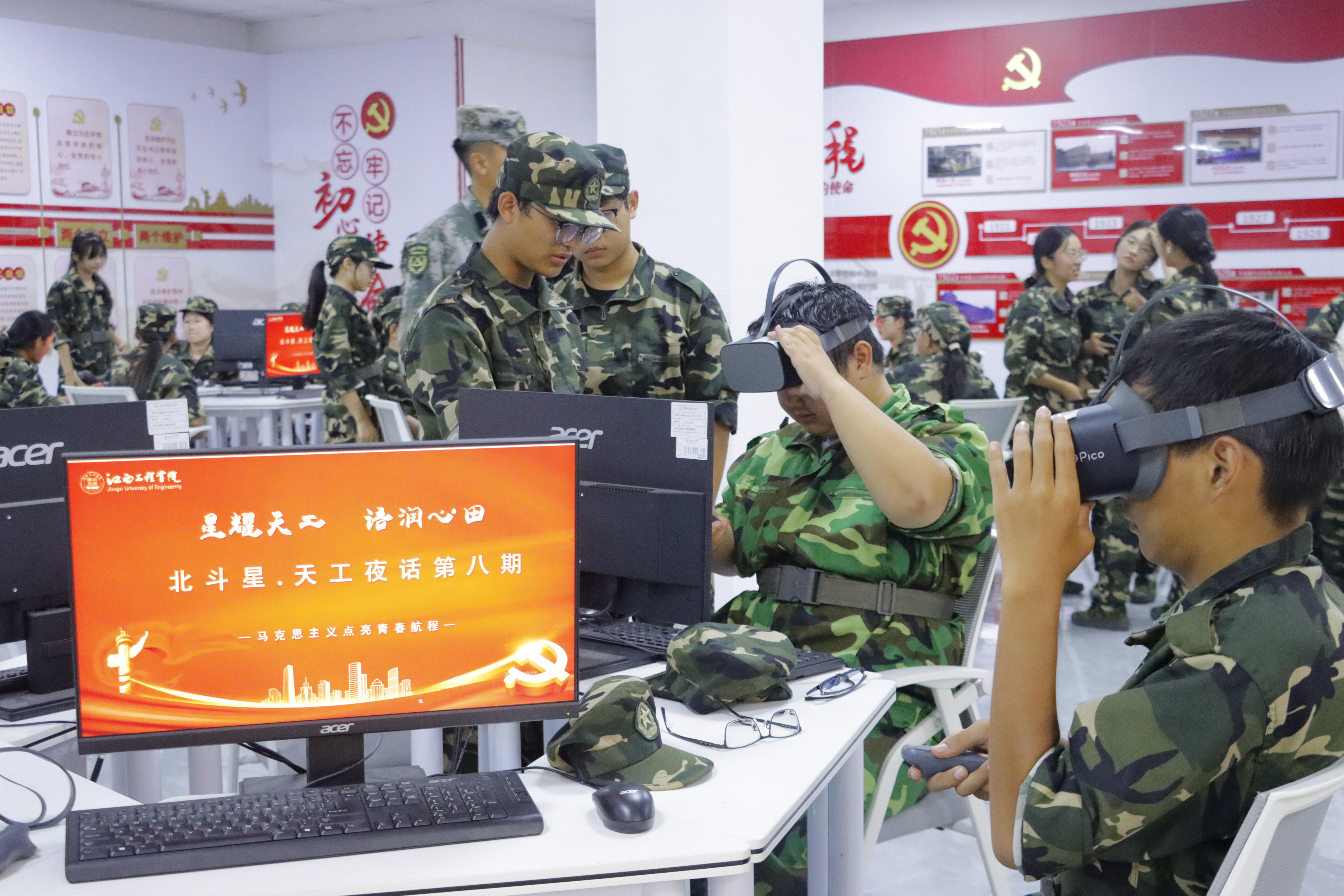 此次活動(dòng)的一大亮點(diǎn),是依托學(xué)校思政VR實(shí)踐中心,將VR虛擬現(xiàn)實(shí)技術(shù)深度融入思政工作,構(gòu)建起線上線下聯(lián)動(dòng)的參觀學(xué)習(xí)模式。通過(guò)全方位、立體化的視聽(tīng)呈現(xiàn),為學(xué)生打造出沉浸式、可互動(dòng)的獨(dú)特學(xué)習(xí)場(chǎng)景,讓思政教育更具溫度、更有力度、更富深度。