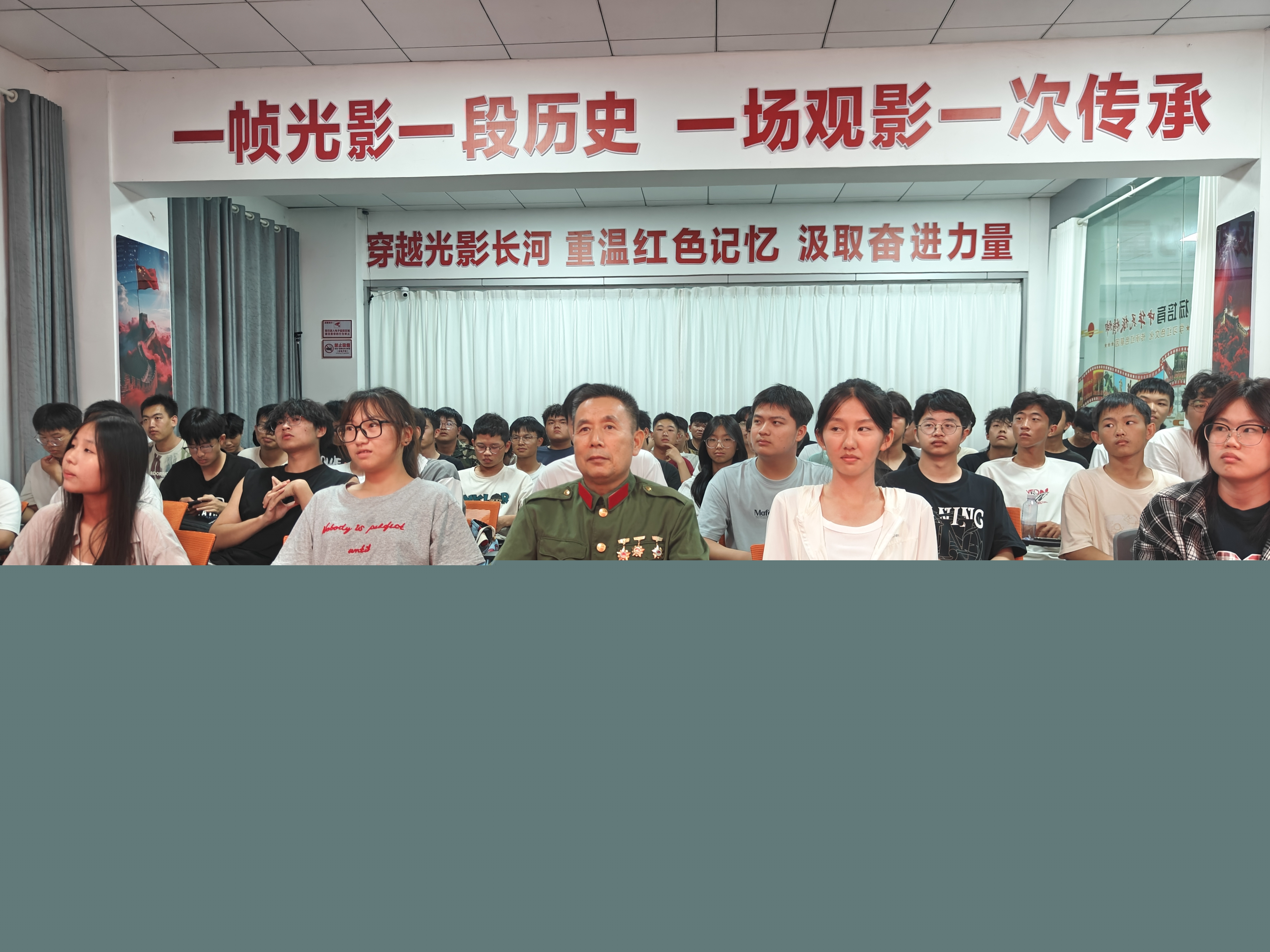 “80年前,中華民族正經(jīng)歷近代以來最沉重的苦難;80年后的今天,我們共同紀(jì)念中國人民抗日戰(zhàn)爭暨世界反法西斯戰(zhàn)爭勝利80周年……”9月24日,江西工程學(xué)院“一站式”學(xué)生社區(qū)紅色影院內(nèi),“老兵宣講團”成員胡光明聲情并茂的宣講,不時引發(fā)臺下熱烈掌聲。