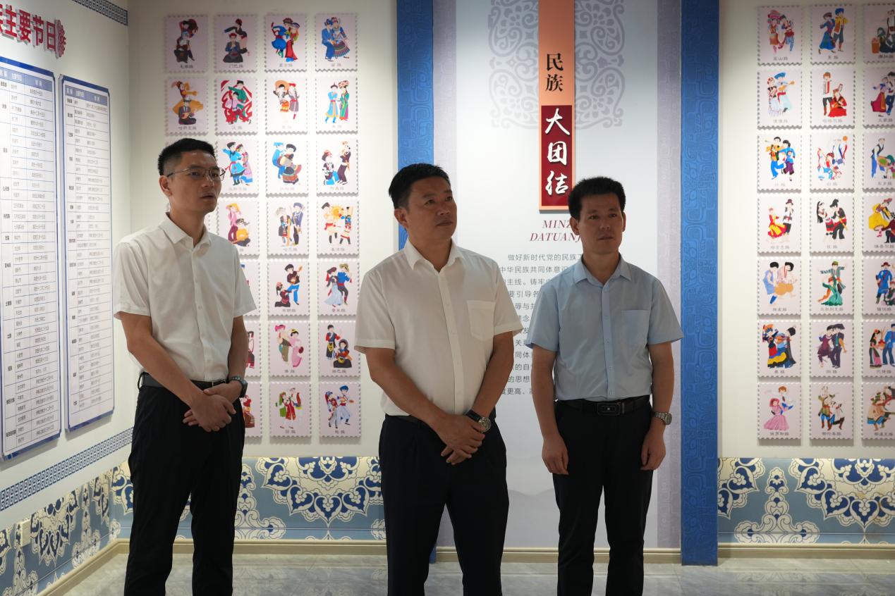 會前,董強來到學(xué)校鑄牢中華民族共同體意識主題展示館、蹴球館、射弩館參觀,對學(xué)校近年來在鑄牢中華民族共同體意識方面的工作表示充分肯定,對鑄牢中華民族共同體意識主題展示館的特色給予高度評價。
