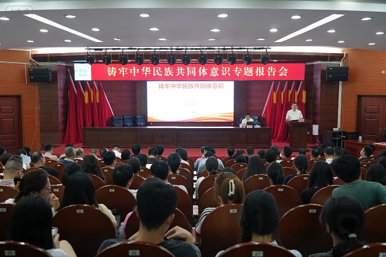 10月13日,為深入貫徹落實習(xí)近平總書記關(guān)于加強和改進民族工作的重要思想,緊扣鑄牢中華民族共同體意識主線,加強我校鑄牢中華民族共同體意識宣傳教育,學(xué)校特邀貴州民族大學(xué)黨委常委、副校長、博士生導(dǎo)師董強教授到校開展專題報告會。校黨委書記、督導(dǎo)專員魏建克主持并作總結(jié)講話,校領(lǐng)導(dǎo)馮赟、沈良、黃海軍、劉德華、樂俊杰、鄒建民出席,全校副處級以上干部、思政課教師、輔導(dǎo)員以及學(xué)生代表300余人參會。
