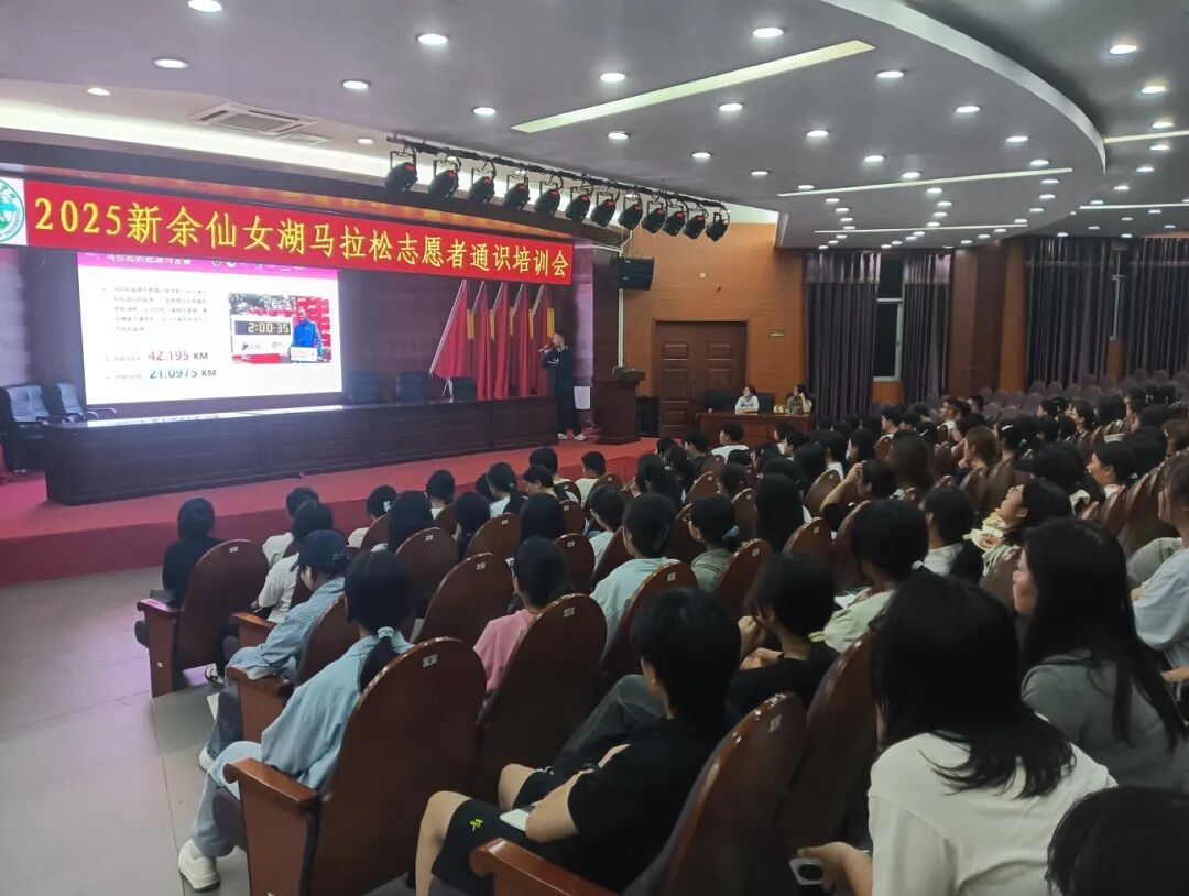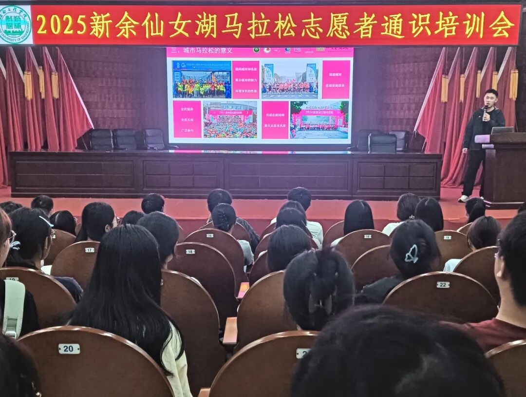 金秋十月,丹桂飄香。2025年10月15日,為全力保障“2025新余仙女湖馬拉松”賽事平穩(wěn)、高效、有序開展,志愿者通識培訓(xùn)會在江西工程學(xué)院學(xué)術(shù)報告廳開展。志愿者們齊聚一堂,以飽滿的精神投入賽前學(xué)習(xí),旨在以最飽滿的熱情和最專業(yè)的服務(wù),為這場高水平體育賽事保駕護航。