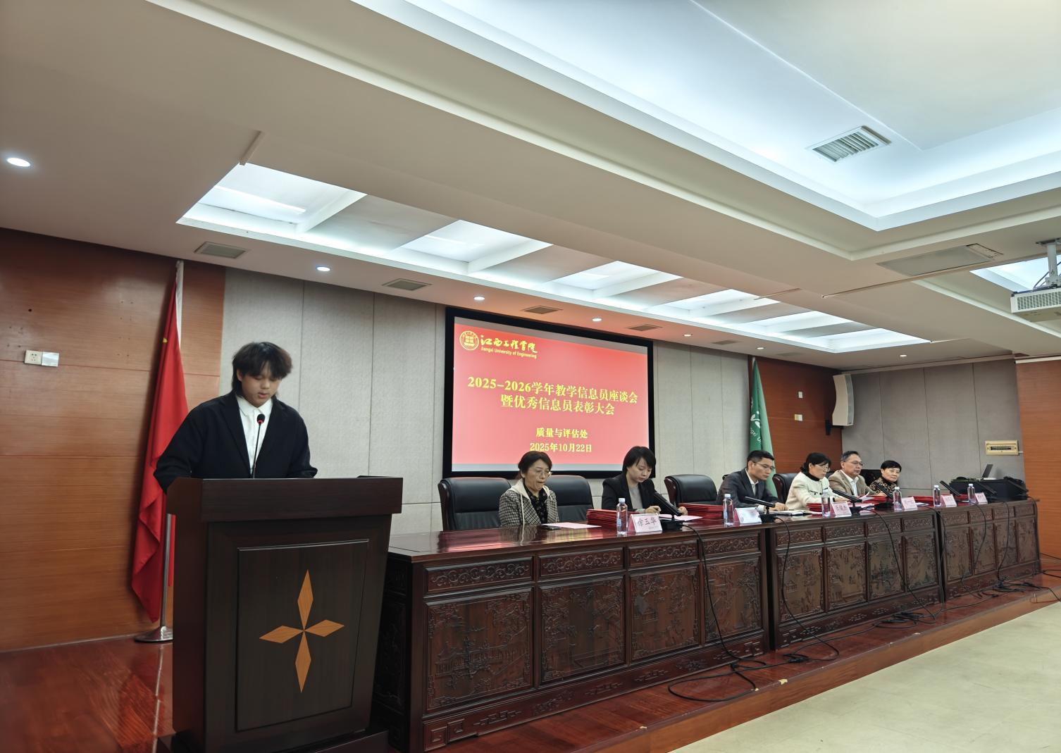 為充分發(fā)揮學(xué)生參與教學(xué)管理和自我管理、自我教育的主體作用,進(jìn)一步加強(qiáng)學(xué)校教風(fēng)和學(xué)風(fēng)建設(shè),提高教學(xué)質(zhì)量和教學(xué)管理水平,10月22日下午,我校在行政樓三樓會(huì)議室隆重舉行2025-2026學(xué)年教學(xué)信息員座談會(huì)暨優(yōu)秀信息員表彰大會(huì)。學(xué)校黨委委員、理事長助理、校長助理樂俊杰出席會(huì)議并講話。質(zhì)量與評估處全體成員、全校教學(xué)督導(dǎo)員及教學(xué)信息員代表參加會(huì)議。會(huì)議由質(zhì)量與評估處處長劉一虹主持。