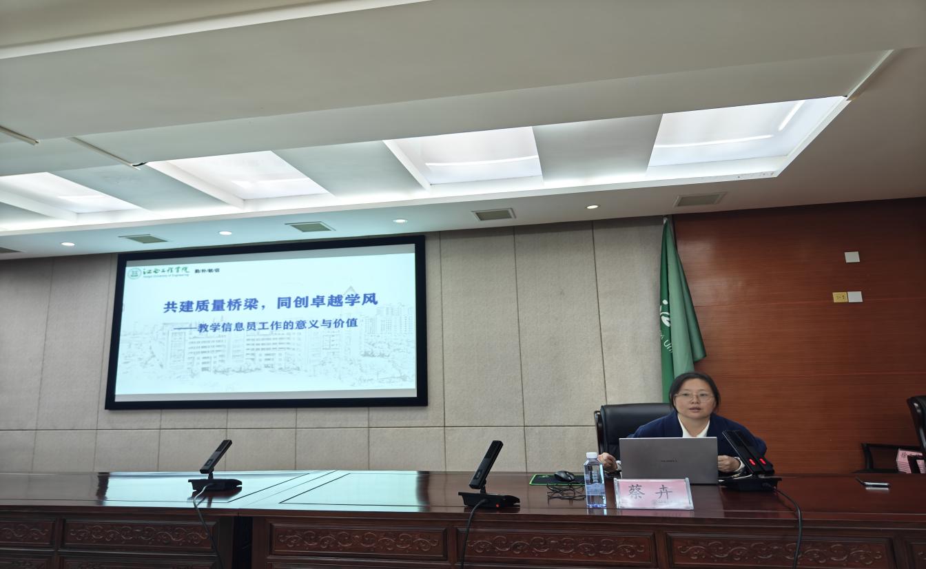 在培訓(xùn)座談環(huán)節(jié),經(jīng)濟(jì)管理學(xué)院教學(xué)督導(dǎo)員蔡卉老師以“共建質(zhì)量橋梁,同創(chuàng)卓越學(xué)風(fēng)”為題開展了業(yè)務(wù)培訓(xùn)。與會(huì)信息員圍繞教學(xué)管理優(yōu)化、后勤服務(wù)保障等方面積極建言。
