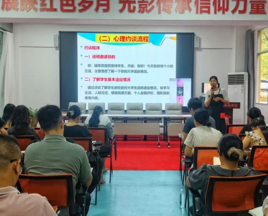 在新生心理普查培訓(xùn)中,心理健康教育與咨詢中心熊小紅老師向輔導(dǎo)員(班主任)詳細(xì)介紹中國大學(xué)生心理健康測評系統(tǒng)操作手冊(學(xué)生)。同時,強(qiáng)調(diào)大家要做好以下2項工作:1.測評前需向?qū)W生講解心理健康測評的科學(xué)性與重要性,消除學(xué)生對測評的誤解與抵觸,讓學(xué)生以客觀、開放的心態(tài)參與測評;2.測評后結(jié)果解讀。協(xié)助學(xué)生理解測評報告,引導(dǎo)學(xué)生正確看待測評結(jié)果,若有困惑及時對接心理老師進(jìn)行進(jìn)一步心理疏導(dǎo)。熊小紅老師還提到心理測評完成后,要做好心理約談工作,并給大家深入講解心理約談流程及注意事項。告訴大家在進(jìn)行心理約談時必須按照流程并且遵循“尊重、保密、共情”原則。若發(fā)現(xiàn)情況嚴(yán)重者要及時進(jìn)行心理疏導(dǎo)以及上報,讓心理咨詢師為學(xué)生提供幫助。