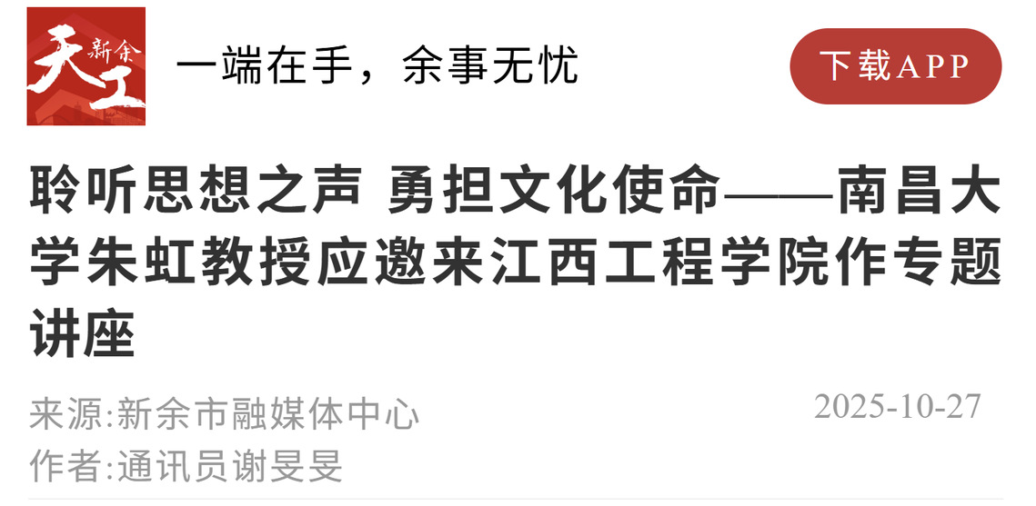 “朱虹教授以新余文化為主題作精彩講座,必將為我們深入解讀新余文化基因,增強文化自信,激發(fā)奮進力量提供全新視角?!甭犕曛v座后,大家紛紛表示,朱虹教授的講座為大家進一步深化理解天工文化育人特色提供了強勁動力。