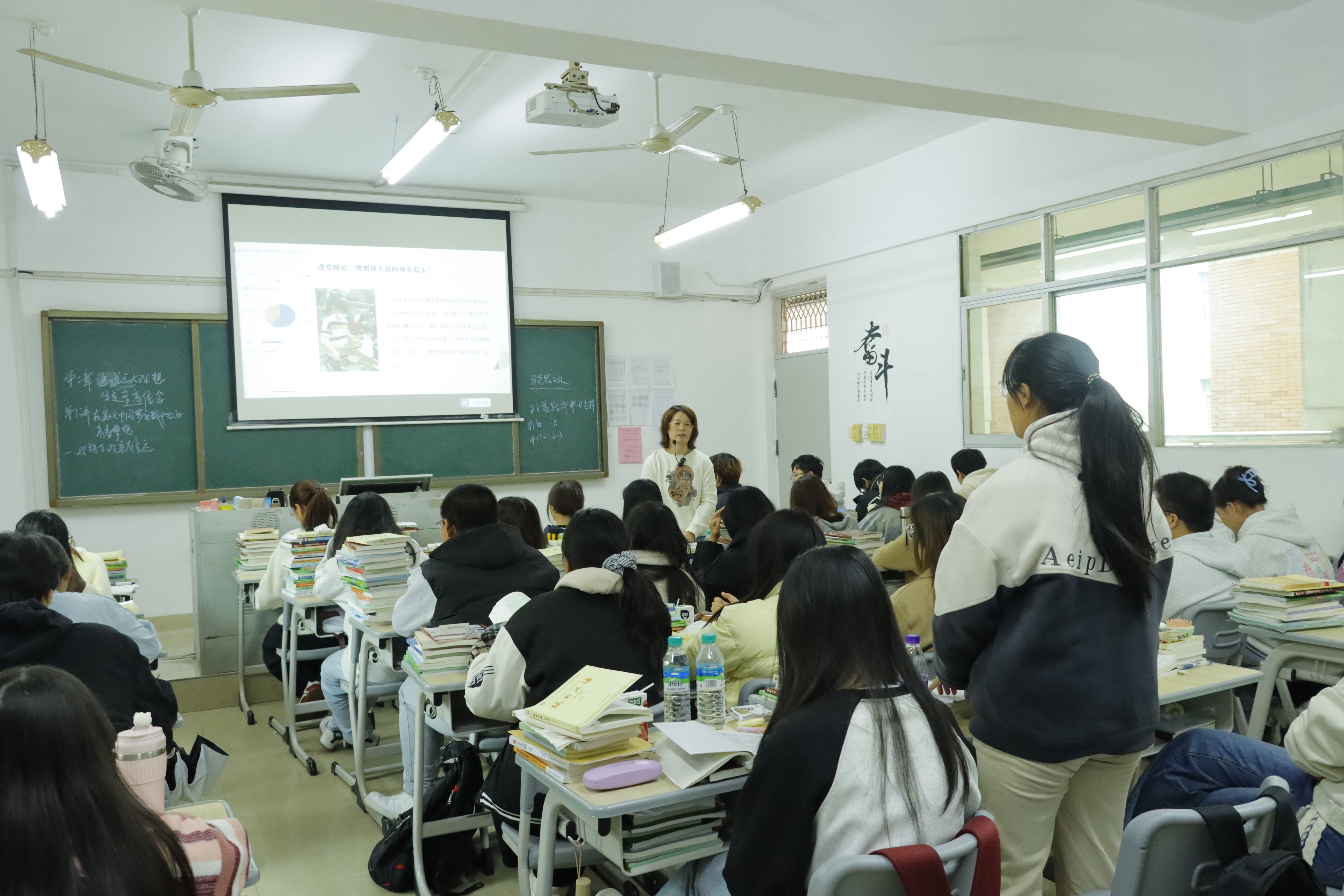 課堂現(xiàn)場(chǎng)呈現(xiàn)出濃厚的思辨氛圍。占順霞老師以“追求遠(yuǎn)大理想堅(jiān)定崇高信念”為主題,系統(tǒng)講解了理想信念的內(nèi)涵價(jià)值、實(shí)踐路徑以及與中國(guó)夢(mèng)的內(nèi)在關(guān)聯(lián)。教學(xué)中,她精準(zhǔn)拋出“理想與現(xiàn)實(shí)的距離如何丈量?”“個(gè)人理想怎樣融入社會(huì)洪流?”等直擊學(xué)生困惑的問(wèn)題,并以熱門(mén)動(dòng)畫(huà)《浪浪山小妖怪》為案例,提煉出“當(dāng)不了英雄也要守住心中微光”的育人觸點(diǎn),生動(dòng)詮釋了理想實(shí)現(xiàn)的長(zhǎng)期性與必然性。