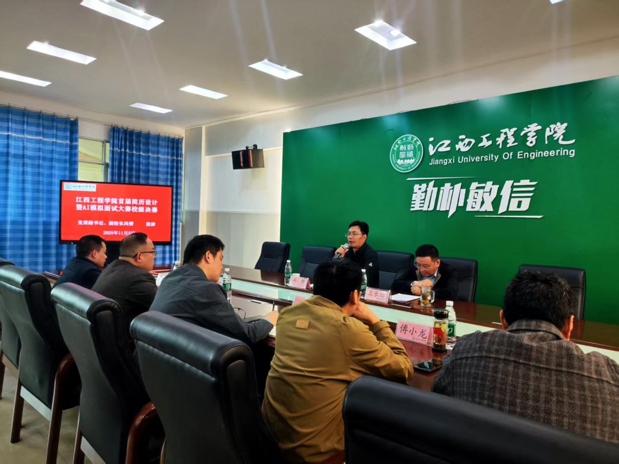 11月5日下午,我校在天工校區(qū)招生就業(yè)服務(wù)大廳舉辦江西工程學院首屆簡歷設(shè)計暨AI模擬面試大賽。本次大賽以“AI賦能·簡出風采,歷煉未來 ”為主題,旨在通過實戰(zhàn)模擬提升學生求職競爭力,精準對接企業(yè)用人需求,幫助學生掌握簡歷設(shè)計與AI面試技巧,為高質(zhì)量就業(yè)奠定堅實基礎(chǔ)。黨委副書記、副校長馮赟出席大賽并致辭。大賽邀請沈龍輝、郭偉光、謝濃、李亞備、傅小龍5位老師擔任評委。就業(yè)處負責人主持活動。