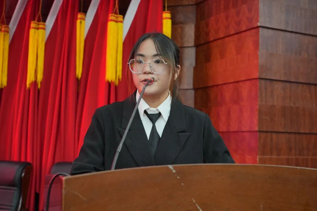 第十一期優(yōu)秀學(xué)員代表孫佳利分享培訓(xùn)感悟與成長歷程,稱青馬工程是知識課堂更是實(shí)踐熔爐,讓她在學(xué)習(xí)與實(shí)踐中體會到青年責(zé)任與使命。她鼓勵學(xué)弟學(xué)妹珍惜機(jī)會,深耕理論、投身實(shí)踐,將個人理想融入國家大局,為強(qiáng)國建設(shè)、民族復(fù)興貢獻(xiàn)青春力量。