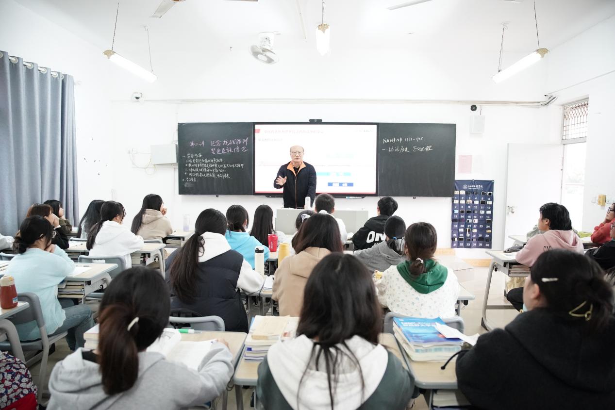 為認(rèn)真學(xué)習(xí)貫徹黨的二十屆四中全會(huì)精神,引導(dǎo)廣大學(xué)生銘記歷史、傳承精神、明確使命擔(dān)當(dāng),11月10日,校黨委副書(shū)記、校長(zhǎng)劉新躍走進(jìn)2024級(jí)貿(mào)易經(jīng)濟(jì)本科1班課堂,以“紀(jì)念抗戰(zhàn)勝利 堅(jiān)定民族信念”為主題講授形勢(shì)與政策課,圍繞抗戰(zhàn)歷史、民族精神與民族信念展開(kāi)深入闡釋,帶領(lǐng)同學(xué)們?cè)跉v史與現(xiàn)實(shí)的對(duì)話中汲取奮進(jìn)力量。