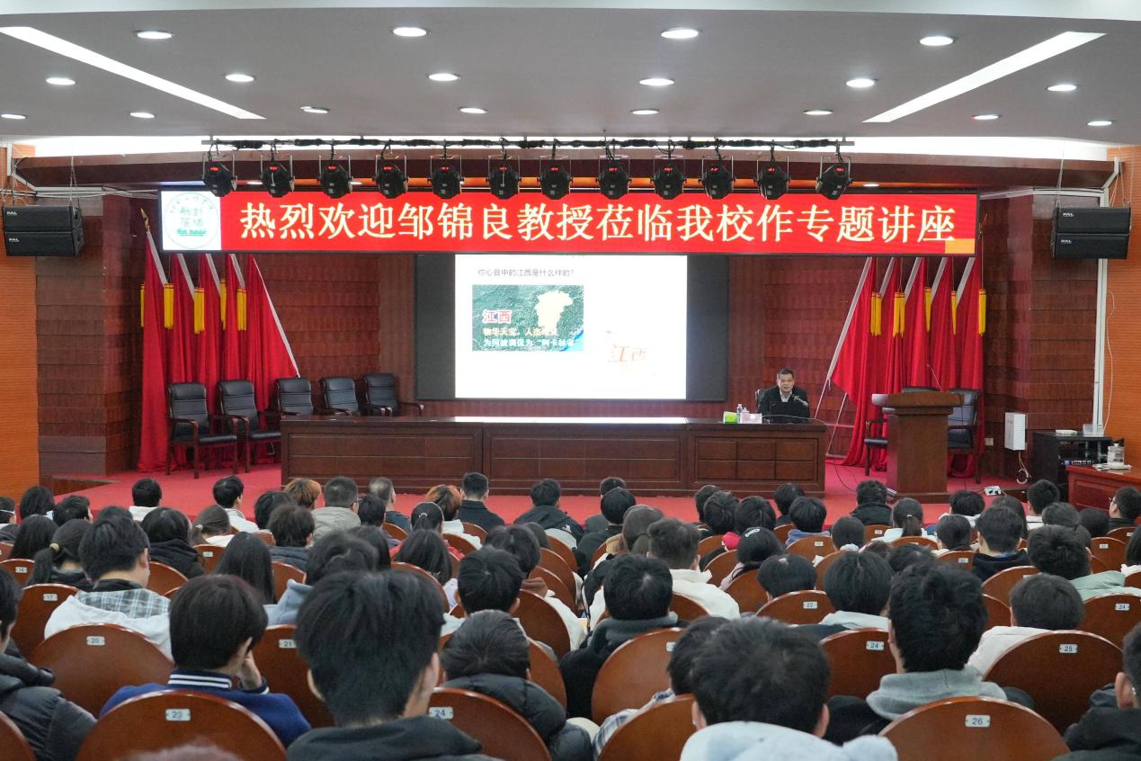 樂俊杰在總結(jié)講話中指出,鄒錦良教授以深厚的學(xué)養(yǎng)、廣闊的視野和飽滿的熱情,為師生們立體勾勒出江西的歷史脈絡(luò)、文化精髓與時(shí)代風(fēng)貌,讓大家對(duì)這片紅土地有了更深刻的理解和更深厚的熱愛。他向全體學(xué)子提出三點(diǎn)期望:一是做“行走的文化探尋者”,主動(dòng)走出課堂,在贛鄱大地上探尋文化印記;二是做“深耕的文化研究者”,充分利用校圖書館資源,深挖江西文化細(xì)節(jié),從先賢智慧中汲取成長養(yǎng)分,筑牢文化自信根基;三是做“熱情的文化傳播者”,積極分享贛鄱文化之美,讓本土文化在新時(shí)代煥發(fā)生機(jī)。