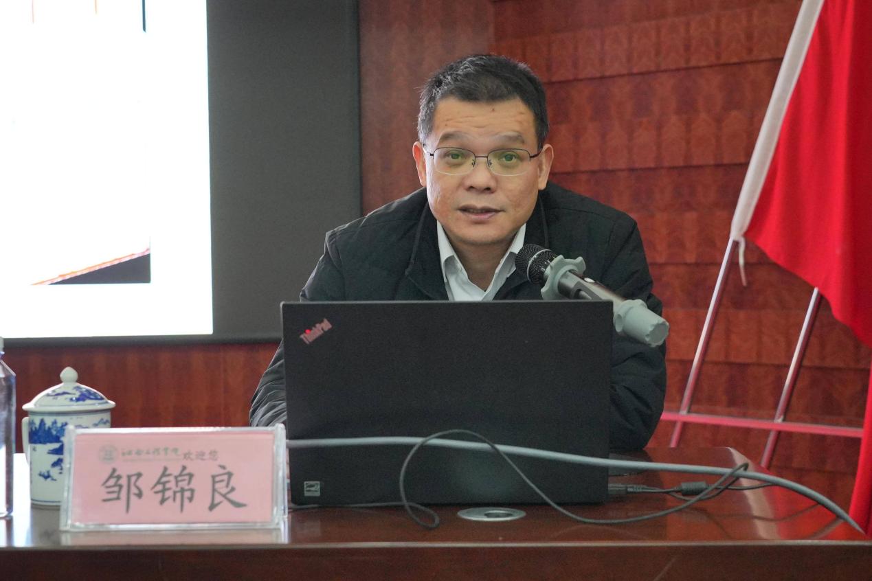 講座中,鄒錦良重點(diǎn)聚焦“顏色里的江西”,以“紅(革命圣地)、綠(生態(tài)家園)、白(陶瓷瑰寶)、金(豐收田野)”四大色系,精準(zhǔn)詮釋江西的多元特質(zhì)。他結(jié)合景德鎮(zhèn)陶瓷燒制技藝、贛南采茶戲等非物質(zhì)文化遺產(chǎn),以及江鈴汽車、廬山云霧茶等現(xiàn)代知名品牌,生動(dòng)展現(xiàn)了江西從歷史深處穩(wěn)步邁向新時(shí)代的蓬勃生機(jī)與強(qiáng)勁活力。鄒教授憑借深厚的學(xué)術(shù)積淀、鮮活的案例講解與飽滿的情感表達(dá),帶領(lǐng)在場師生穿越時(shí)空,沉浸式感受贛鄱大地的文化基因與時(shí)代脈搏。