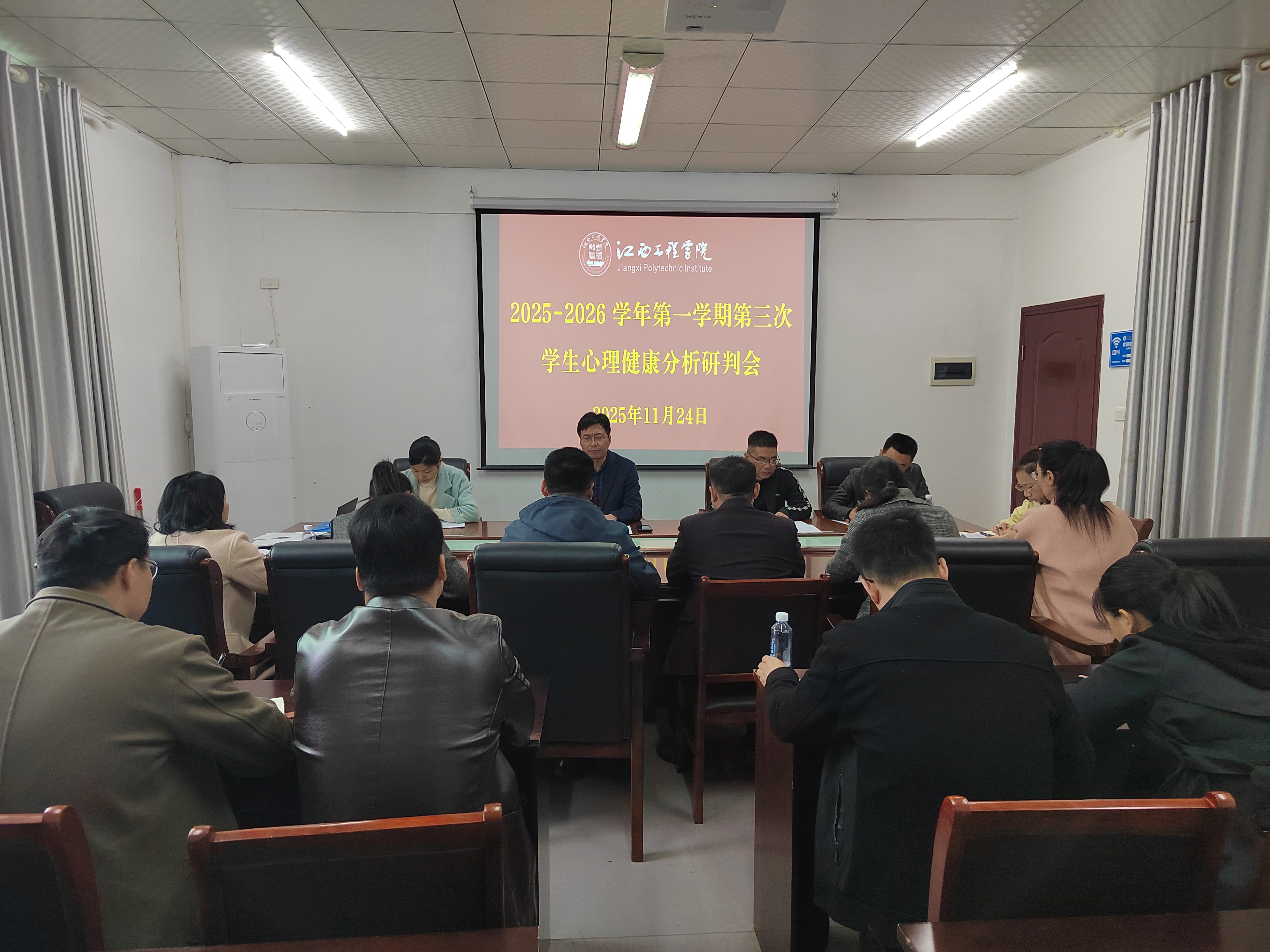 為了解學生心理健康狀況,切實做好學生心理健康教育工作,提升心理育人實效,維護校園和諧穩(wěn)定。2025年11月24日下午,我校在天工校區(qū)行政樓五樓會議室召開2025-2026學年第一學期第三次學生心理健康分析研判會。校黨委副書記、副校長馮赟出席會議并講話,學生工作處全體人員、各二級學院心理輔導站站長以及副書記參加了本次會議。