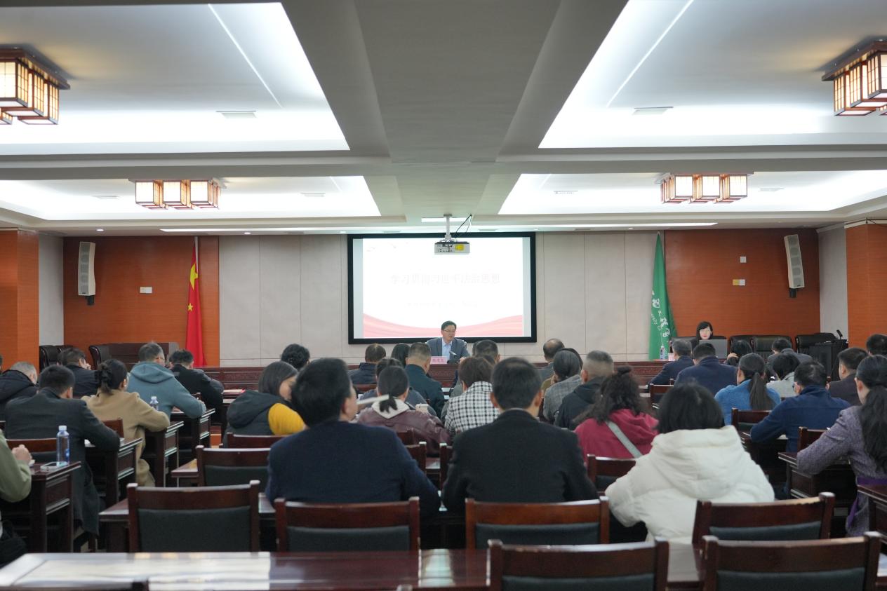 會(huì)議特邀中共新余市委黨校教研三室主任、副教授李弘雯作題為《學(xué)習(xí)貫徹習(xí)近平法治思想》的專題輔導(dǎo)報(bào)告。報(bào)告圍繞習(xí)近平法治思想的重大意義、核心要義和實(shí)踐要求三個(gè)方面,進(jìn)行了深入闡釋和系統(tǒng)解讀。整場(chǎng)報(bào)告兼具理論高度與實(shí)踐深度,通過(guò)鮮活案例生動(dòng)梳理了習(xí)近平法治思想的精髓要義,為學(xué)校推進(jìn)依法治校與數(shù)字化建設(shè)的融合發(fā)展提供了有益的思路和啟發(fā)。