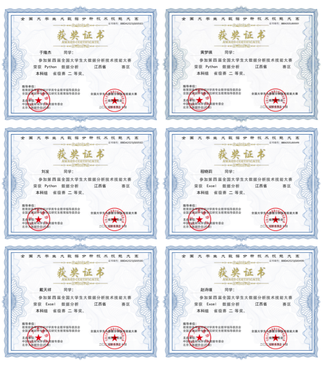 近日,第四屆全國大學生大數(shù)據(jù)分析技術(shù)技能大賽江西賽區(qū)省賽圓滿落幕,作為大數(shù)據(jù)分析領(lǐng)域極具影響力的賽事,本次大賽吸引了全國超5800名學子同臺競技。經(jīng)過激烈角逐,我校人工智能與數(shù)據(jù)科學學院學子在Python數(shù)據(jù)分析、Excel數(shù)據(jù)分析兩大賽項中多點開花,斬獲省級二等獎6項,充分彰顯了我校數(shù)據(jù)科學與大數(shù)據(jù)技術(shù)專業(yè)的教學成效和人才培養(yǎng)質(zhì)量。