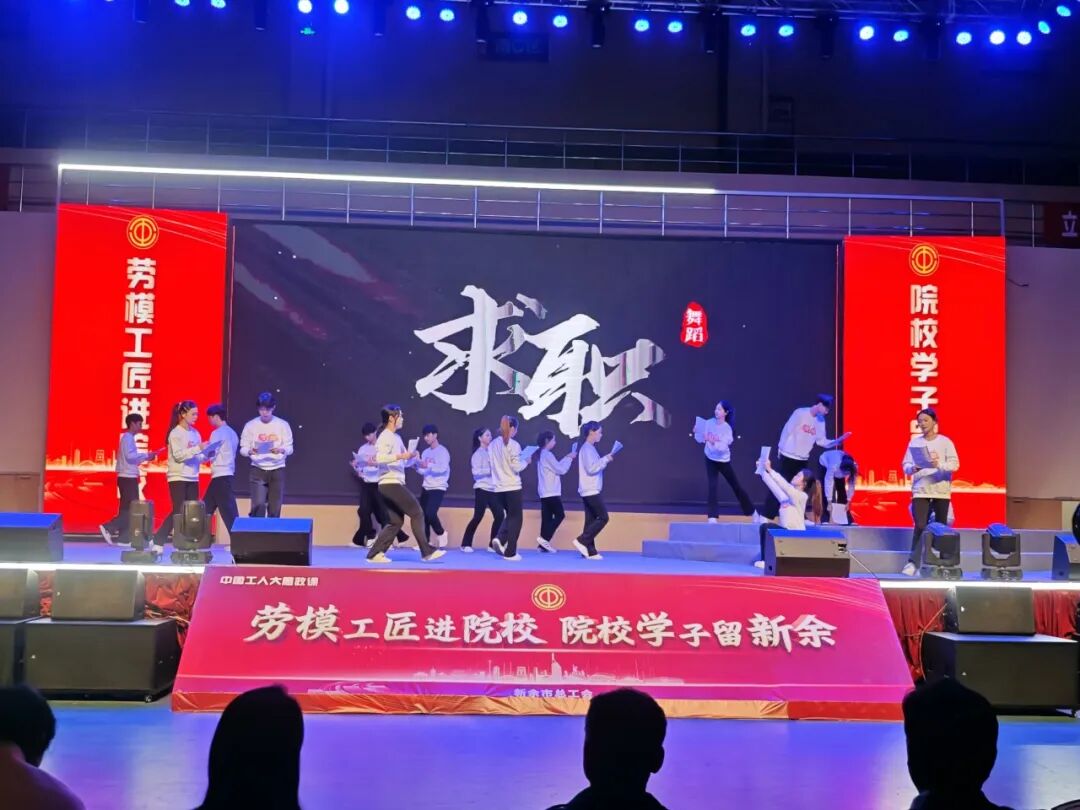 2025年11月27日晚7:30,“勞模工匠進(jìn)院校、院校學(xué)子留新余”中國工人大思政課在江西工程學(xué)院體育館舉行展演,抱石藝術(shù)學(xué)院精心編排的舞蹈作品《求職》與《青春綻放在新余》精彩亮相,以藝術(shù)化表達(dá)詮釋勞模精神內(nèi)涵,傳遞學(xué)子扎根新余的青春誓言,贏得現(xiàn)場觀眾陣陣掌聲。
