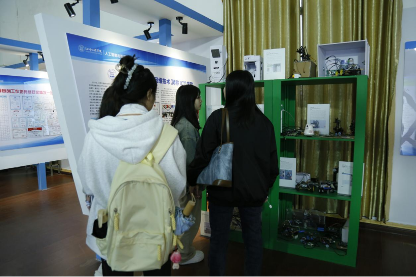 在仙女湖校區(qū),同學(xué)們依次走訪校企合作基地、工業(yè)4.0實(shí)訓(xùn)中心、華為ICT產(chǎn)業(yè)學(xué)院、智能制造產(chǎn)業(yè)學(xué)院及電子實(shí)訓(xùn)中心,通過現(xiàn)場(chǎng)觀摩智能生產(chǎn)線、5G技術(shù)應(yīng)用場(chǎng)景及教學(xué)成果展,直觀感受學(xué)校的辦學(xué)特色。在立德園,一幅幅歷史照片、一件件實(shí)物展品,生動(dòng)再現(xiàn)了學(xué)校四十多年來的發(fā)展歷程,學(xué)生們駐足細(xì)觀,深刻領(lǐng)悟“勤樸敏信”校訓(xùn)的精神內(nèi)涵和校園德育文化。在教學(xué)成果展廳里,同學(xué)們仔細(xì)觀摩學(xué)校在實(shí)踐教學(xué)與科研創(chuàng)新領(lǐng)域所斬獲的豐碩成果。這一直觀的體驗(yàn),使同學(xué)們對(duì)學(xué)校的辦學(xué)理念以及人才培養(yǎng)模式形成了更為深刻、透徹的認(rèn)識(shí)。