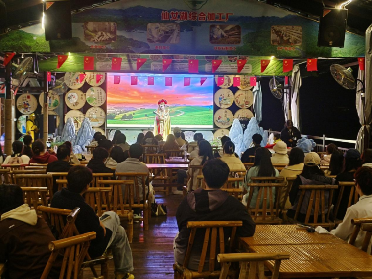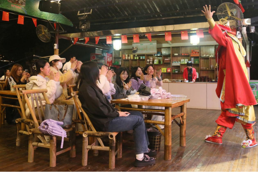 傍晚,同學(xué)們移步仙女谷景區(qū)與仙女湖碼頭集市,在山水間感受新余“仙女下凡”傳說的浪漫底蘊(yùn)。動(dòng)感燈光秀、曬秋、非遺達(dá)人秀、夏布工藝品等體驗(yàn)項(xiàng)目讓傳統(tǒng)文化“活”起來,同學(xué)們沉浸式體驗(yàn)新余“青年友好型城市”的活力氛圍。2023級(jí)電子商務(wù)專升本2班楊紫艷同學(xué)表示:學(xué)校精心設(shè)計(jì)的路線,讓我們?cè)谛凶咧凶x懂了新余制造與生態(tài)共生的城市基因。我們不僅看到了科技的銳度,更觸摸到了文化的溫度。