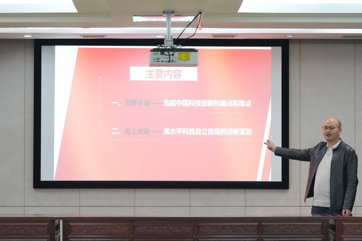 徐國民作專題輔導(dǎo)報告,他圍繞準(zhǔn)確把握社會主義現(xiàn)代化發(fā)展目標(biāo)的邏輯進(jìn)程、“十五五”期間經(jīng)濟(jì)發(fā)展中的五個新趨勢和社會發(fā)展中的四個新走向展示了黨的二十屆四中全會精神融入思政課的教學(xué)示范。報告從理論視角、時代背景、對照比較三個維度深入解讀了黨的二十屆四中全會精神,詳細(xì)闡述了黨的二十屆四中全會精神融入《習(xí)近平新時代中國特色社會主義思想概論》課程的核心要點與教學(xué)方法。他強(qiáng)調(diào)要注重教材語言向教學(xué)語言轉(zhuǎn)化,以學(xué)生價值評判能力和思維能力提升為導(dǎo)向,增強(qiáng)思政課的理論深度與實踐溫度。