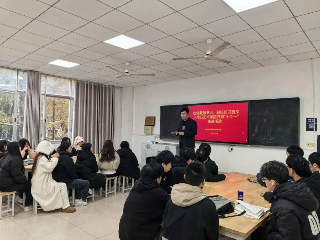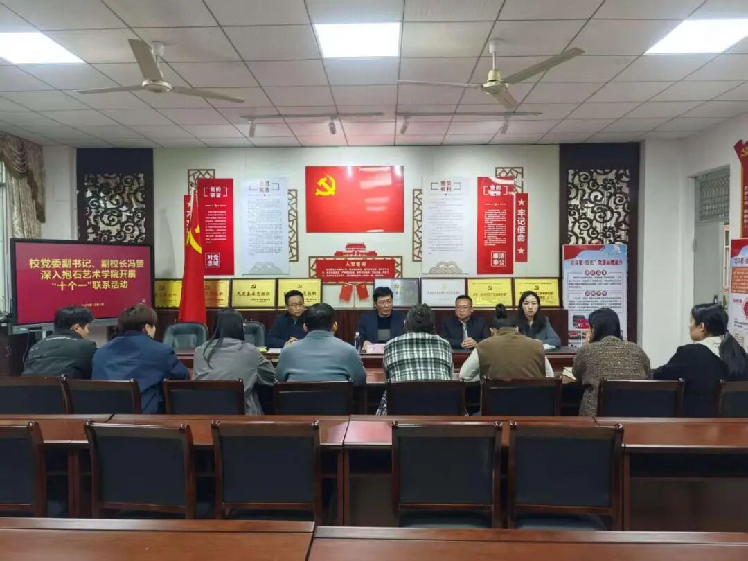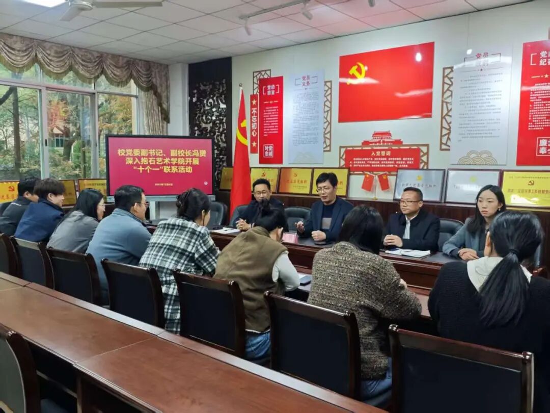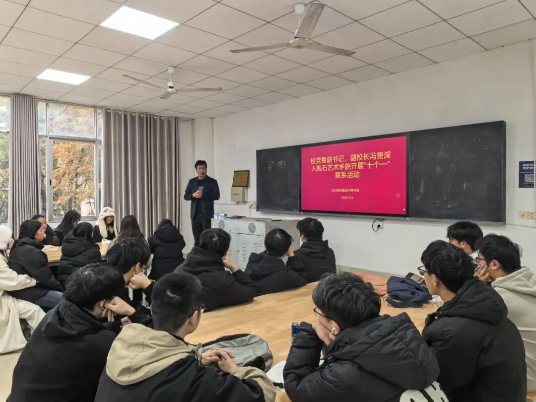 12月4日,校黨委副書(shū)記、副校長(zhǎng)馮赟深入抱石藝術(shù)學(xué)院,開(kāi)展黨員領(lǐng)導(dǎo)干部“十個(gè)一”聯(lián)系活動(dòng)。與師生面對(duì)面交流,傾聽(tīng)心聲、解決困難、指導(dǎo)發(fā)展。