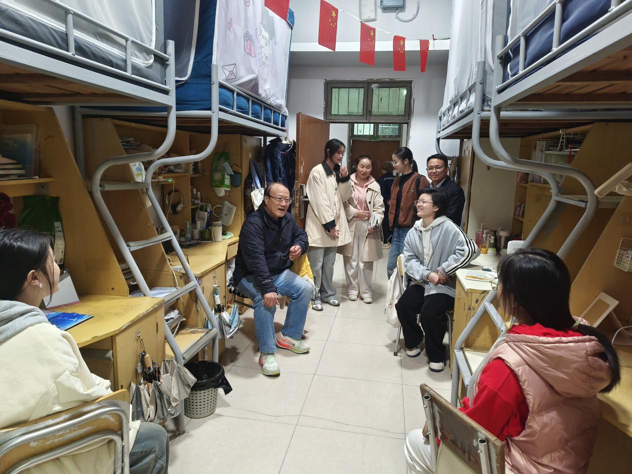 在宿舍聯(lián)系中,劉新躍實地察看14棟學(xué)生住宿環(huán)境,詳細詢問同學(xué)們思想學(xué)習(xí)生活狀況,認真征集對宿舍條件、后勤保障等工作的意見建議。在14棟D214宿舍,他與學(xué)生暢談家鄉(xiāng)變化、分享假期見聞,細致了解大家的階段性目標規(guī)劃,勉勵同學(xué)們珍惜學(xué)習(xí)時光,與室友互幫互助、和諧相處,以飽滿熱情投入學(xué)習(xí)生活,實現(xiàn)自我提升。