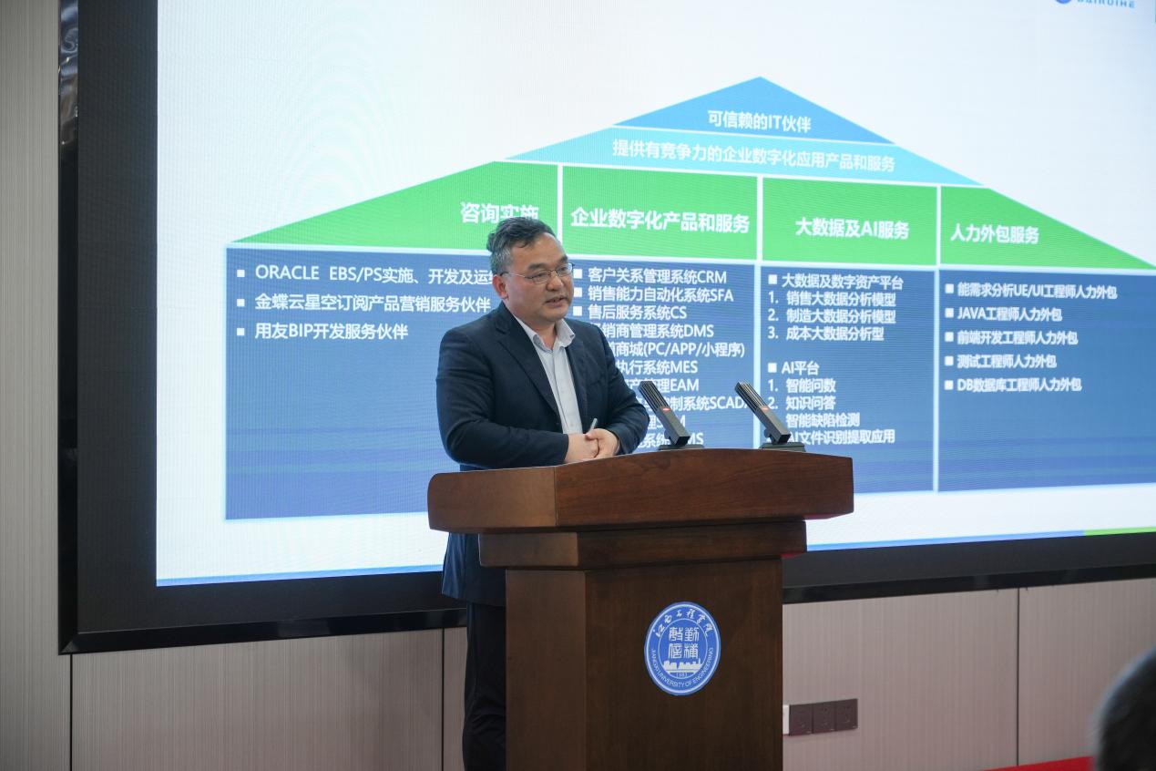 在企業(yè)代表發(fā)言環(huán)節(jié),六位來自不同行業(yè)的企業(yè)負(fù)責(zé)人結(jié)合自身發(fā)展實(shí)際,分享合作經(jīng)驗(yàn)、表達(dá)合作期待。中國(guó)移動(dòng)通信集團(tuán)江西有限公司新余分公司總經(jīng)理黃瑋表示,公司正深入推進(jìn)數(shù)字化轉(zhuǎn)型,急需復(fù)合型信息人才,期待與學(xué)校在5G+、物聯(lián)網(wǎng)、大數(shù)據(jù)等領(lǐng)域開展定向培養(yǎng)與項(xiàng)目研發(fā);新余市數(shù)字產(chǎn)業(yè)投資發(fā)展有限公司黨委委員、副總經(jīng)理張小紅介紹了公司在智慧城市、數(shù)字政務(wù)領(lǐng)域的布局,希望與學(xué)校共建實(shí)訓(xùn)基地,深化數(shù)據(jù)治理與人工智能應(yīng)用合作;華為技術(shù)有限公司江西政企服務(wù)部部長(zhǎng)徐洪國(guó)強(qiáng)調(diào)了生態(tài)合作的重要性,提出將在師資培訓(xùn)、認(rèn)證體系、競(jìng)賽支持等方面給予學(xué)校資源傾斜。