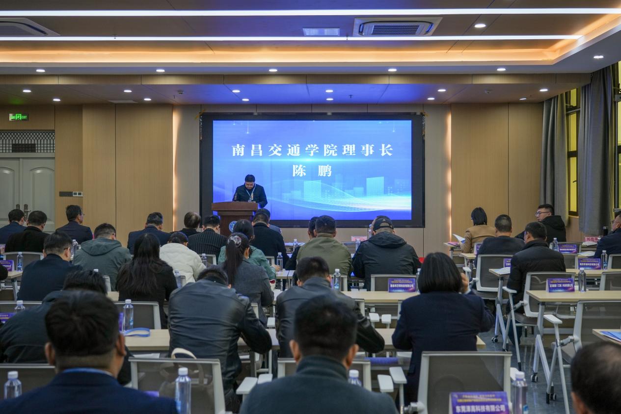 南昌交通學(xué)院黨委副書記、副校長(zhǎng)堯剛?cè)A代表陳鵬理事長(zhǎng)致賀詞,稱贊江西工程學(xué)院產(chǎn)教融合、協(xié)同育人的創(chuàng)新舉措與成效為應(yīng)用型高校提供了寶貴借鑒,期待兩校加強(qiáng)交流,在課程共建、實(shí)習(xí)基地互通等方面深化合作,共促江西高等教育與產(chǎn)業(yè)協(xié)同發(fā)展。