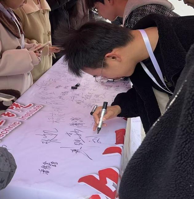 中午時(shí)分,校團(tuán)委學(xué)生會(huì)組織的國(guó)家公祭日簽名活動(dòng)在校園內(nèi)正式拉開帷幕。印有“銘記歷史 捍衛(wèi)和平”的巨型橫幅在新食堂門口場(chǎng)地上格外醒目,吸引了大批同學(xué)駐足參與。大家手持簽字筆,鄭重地在橫幅上寫下自己的姓名,落筆的瞬間,既是對(duì)南京大屠殺中遇難同胞的深切追思,也是對(duì)“以史為鑒、珍惜和平”的莊嚴(yán)承諾。一筆一畫間,盡顯江工青年對(duì)歷史的敬畏、對(duì)和平的珍視,更讓人深切感受到年輕一代“不忘國(guó)恥、振興中華”的責(zé)任與擔(dān)當(dāng)。