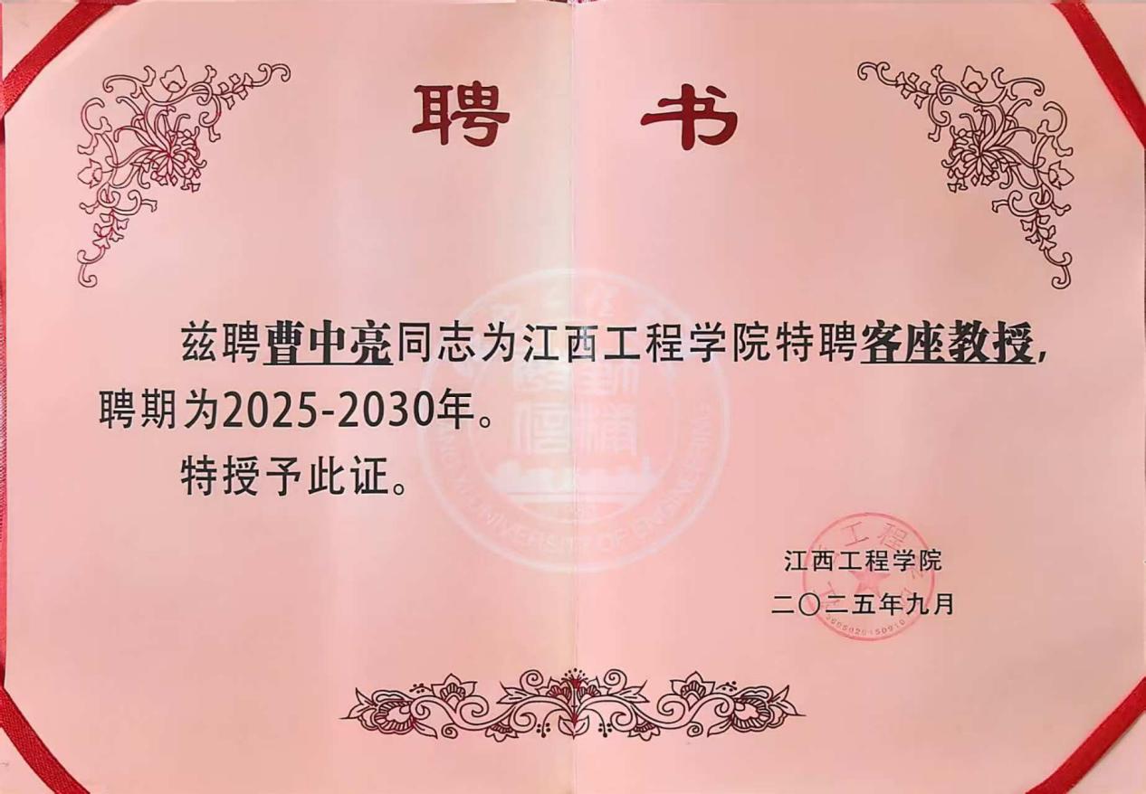 雖常年深耕市場(chǎng)一線,但曹中亮始終心系母校發(fā)展,用實(shí)際行動(dòng)踐行校友擔(dān)當(dāng)。2016年7月,他首次受聘為江西工程學(xué)院特聘客座教授,任期五年間,積極為母校學(xué)科建設(shè)、專業(yè)發(fā)展建言獻(xiàn)策,將企業(yè)一線的技術(shù)動(dòng)態(tài)、市場(chǎng)需求融入教學(xué)指導(dǎo),為學(xué)子搭建起理論與實(shí)踐銜接的橋梁。2025年,他再度接過母校聘書,續(xù)任特聘客座教授(2025-2030年),承諾將持續(xù)分享創(chuàng)業(yè)經(jīng)驗(yàn)、整合行業(yè)資源,助力母校應(yīng)用型人才培養(yǎng),為電子信息特色專業(yè)建設(shè)注入產(chǎn)業(yè)活力。這份跨越近二十年的校友情誼,成為他反哺教育、回饋母校的生動(dòng)注腳。