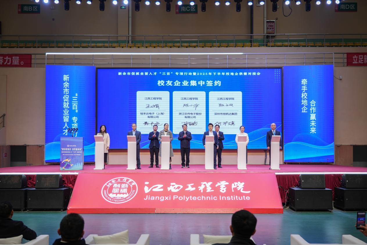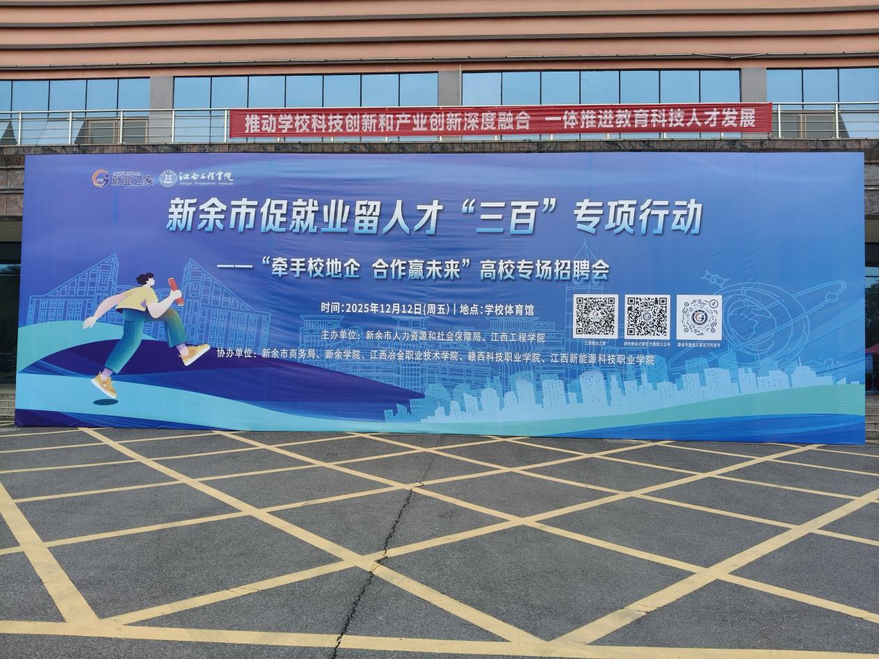 12月12日,新余市促就業(yè)留人才“三百”專項(xiàng)行動(dòng)暨2025年下半年校地企供需對(duì)接會(huì)在江西工程學(xué)院圓滿落幕。這場(chǎng)以“牽手校地企 合作贏未來(lái)”為主題的活動(dòng),創(chuàng)新構(gòu)建“會(huì)前參訪+會(huì)中對(duì)接+會(huì)后深化”全鏈條服務(wù)體系,實(shí)現(xiàn)政府、高校、企業(yè)三方資源精準(zhǔn)匹配,為教育鏈、人才鏈、產(chǎn)業(yè)鏈、創(chuàng)新鏈“四鏈融合”注入強(qiáng)勁動(dòng)能。