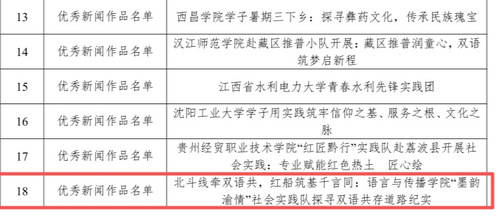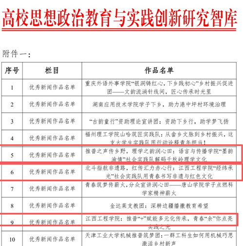 在優(yōu)秀新聞作品評選中,張艷、占順霞老師指導的《推普+賦能多元化傳承》新聞作品榜上有名;來燕、孫雯老師指導團隊“經緯承光”社會實踐隊斬獲殊榮。這些新聞作品以文字為媒,生動記錄了實踐隊深入鄉(xiāng)村一線開展文化傳播、推普助力、志愿服務的點滴歷程,傳遞了青年學子扎根基層、服務鄉(xiāng)村的青春擔當,展現(xiàn)了我校思政實踐教育的生動實踐。