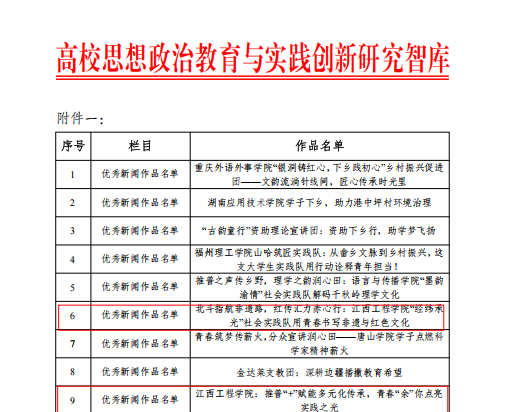 在優(yōu)秀新聞作品評(píng)選中,張艷、占順霞老師指導(dǎo)的《推普+賦能多元化傳承》新聞作品榜上有名;來(lái)燕、孫雯老師指導(dǎo)團(tuán)隊(duì)“經(jīng)緯承光”社會(huì)實(shí)踐隊(duì)斬獲殊榮。這些新聞作品以文字為媒,生動(dòng)記錄了實(shí)踐隊(duì)深入鄉(xiāng)村一線(xiàn)開(kāi)展文化傳播、推普助力、志愿服務(wù)的點(diǎn)滴歷程,傳遞了青年學(xué)子扎根基層、服務(wù)鄉(xiāng)村的青春擔(dān)當(dāng),展現(xiàn)了我校思政實(shí)踐教育的生動(dòng)實(shí)踐。