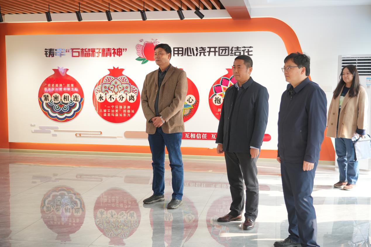 座談會(huì)前,江延湖一行實(shí)地參觀了“一站式”學(xué)生社區(qū)服務(wù)中心、學(xué)生社區(qū)書(shū)畫(huà)活動(dòng)室、大學(xué)生國(guó)防教育活動(dòng)室、鑄牢中華民族共同體意識(shí)主題展示館等。