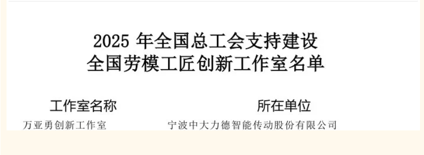 2025年12月,中華全國總工會辦公廳正式公布2025年全國勞模工匠創(chuàng)新工作室支持建設名單,寧波中大力德智能傳動股份有限公司“萬亞勇勞模工匠創(chuàng)新工作室”憑借深厚的技術(shù)積淀與突出的創(chuàng)新成果成功入選,獲國家級專項支持!工作室領銜人萬亞勇系江西工程學院杰出校友,這一榮譽既是對其個人工匠精神的高度認可,更是江西工程學院“勤樸敏信”校訓育人成效的生動彰顯。