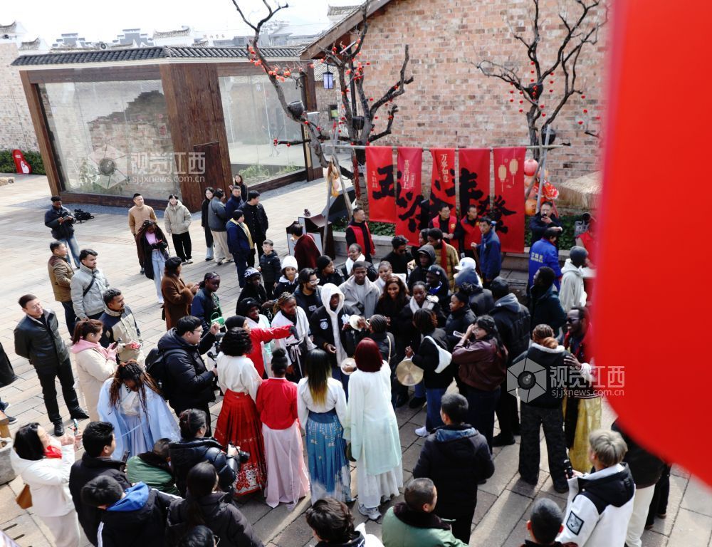 2月7日,江西省新余市分宜縣在分宜鎮(zhèn)介橋古村舉行尋味分宜?贛出幸福年“2026家鄉(xiāng)年之我在江西過(guò)大年”主題文化活動(dòng),邀請(qǐng)江西工程學(xué)院和新余學(xué)院的各國(guó)留學(xué)生,和當(dāng)?shù)卮迕褚黄鸶惺苤袊?guó)的喜慶年味。