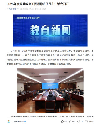2月11日,2025年度省委教育工委領導班子民主生活會召開。省委督導組組長、省委組織部副部長、省人大常委會代表工作委員會主任劉光華到會督導并作點評講話,省紀委監(jiān)委第八監(jiān)督檢查室副主任朱桂敬、省委組織部干部四處處長黃桂紅到會督導。省委教育工委書記吳永明主持會議并講話,省教育廳廳長鄭磊列席。