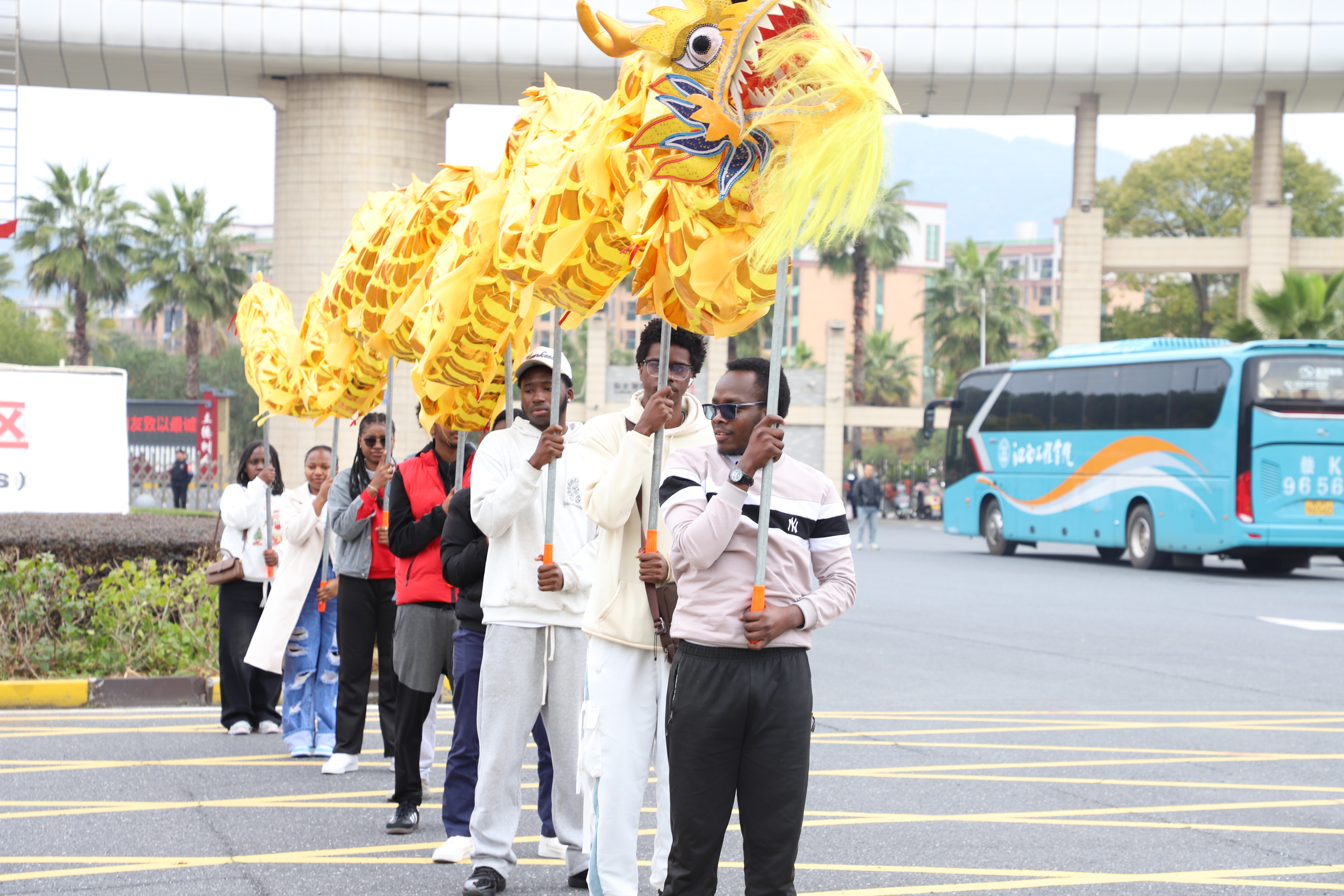 2025年9月,烏干達留學(xué)生拉斐爾來到江西工程學(xué)院求學(xué)。今年是他第一次在新余過春節(jié),也是第一次近距離感受中國傳統(tǒng)民俗的獨特魅力?!霸跒醺蛇_,我只在網(wǎng)絡(luò)短視頻里看過舞龍,覺得特別震撼,沒想到有一天能親手拿起龍桿,加入舞龍隊伍?!崩碃柵d奮地說。