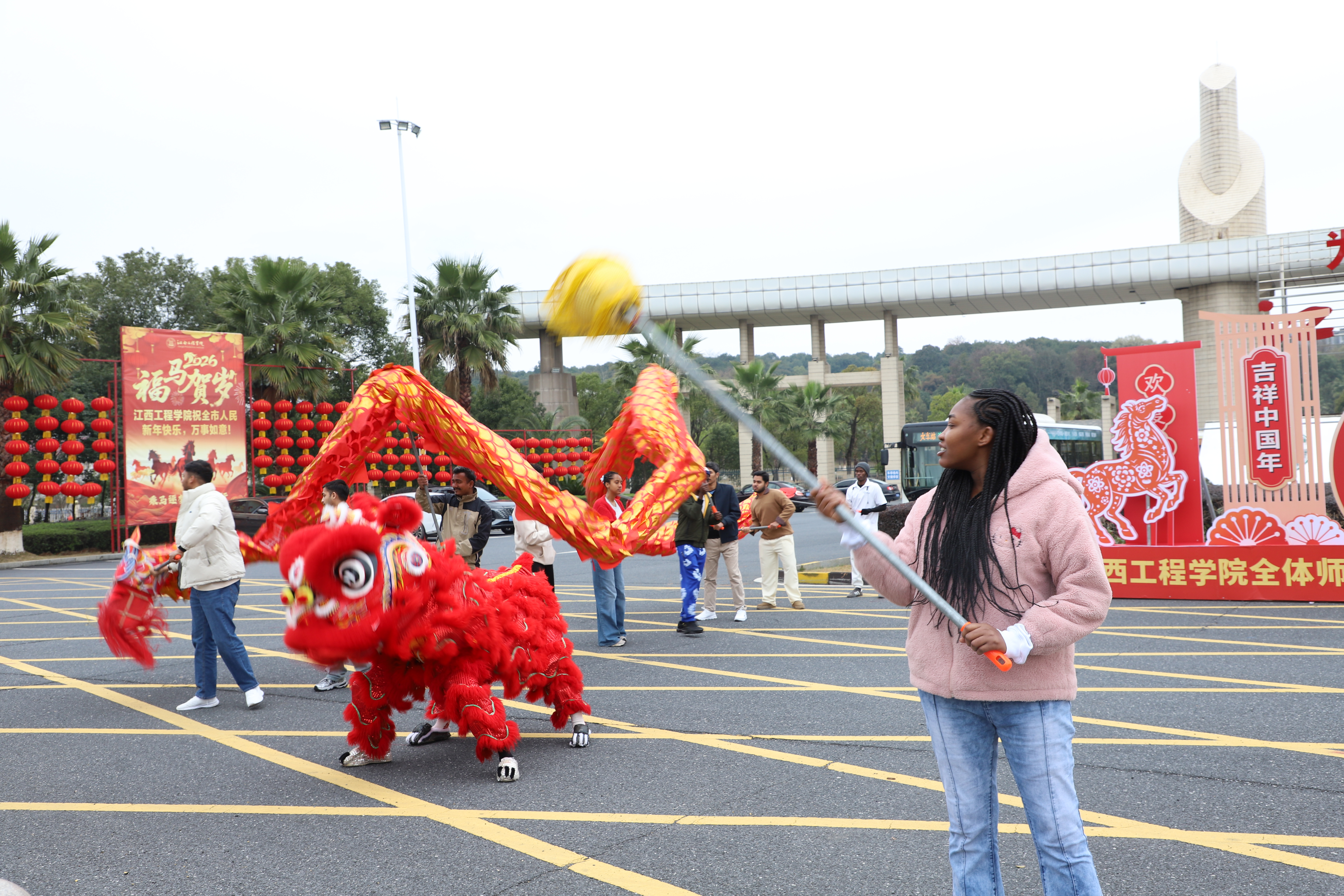 元宵佳節(jié)燈火暖,中外同樂慶團圓。3月3日,江西工程學(xué)院舉辦“歡樂鬧元宵”民俗體驗活動,20余名外國留學(xué)生化身“舞龍小將”,親手執(zhí)起舞龍桿沉浸式體驗傳統(tǒng)民俗,在鑼鼓喧天中感受濃濃“中國味兒”。