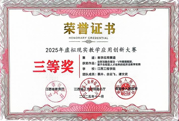 [13]江西省2025年虛擬現(xiàn)實教學應用創(chuàng)新大賽教學應用賽道三等獎,2025年11月。